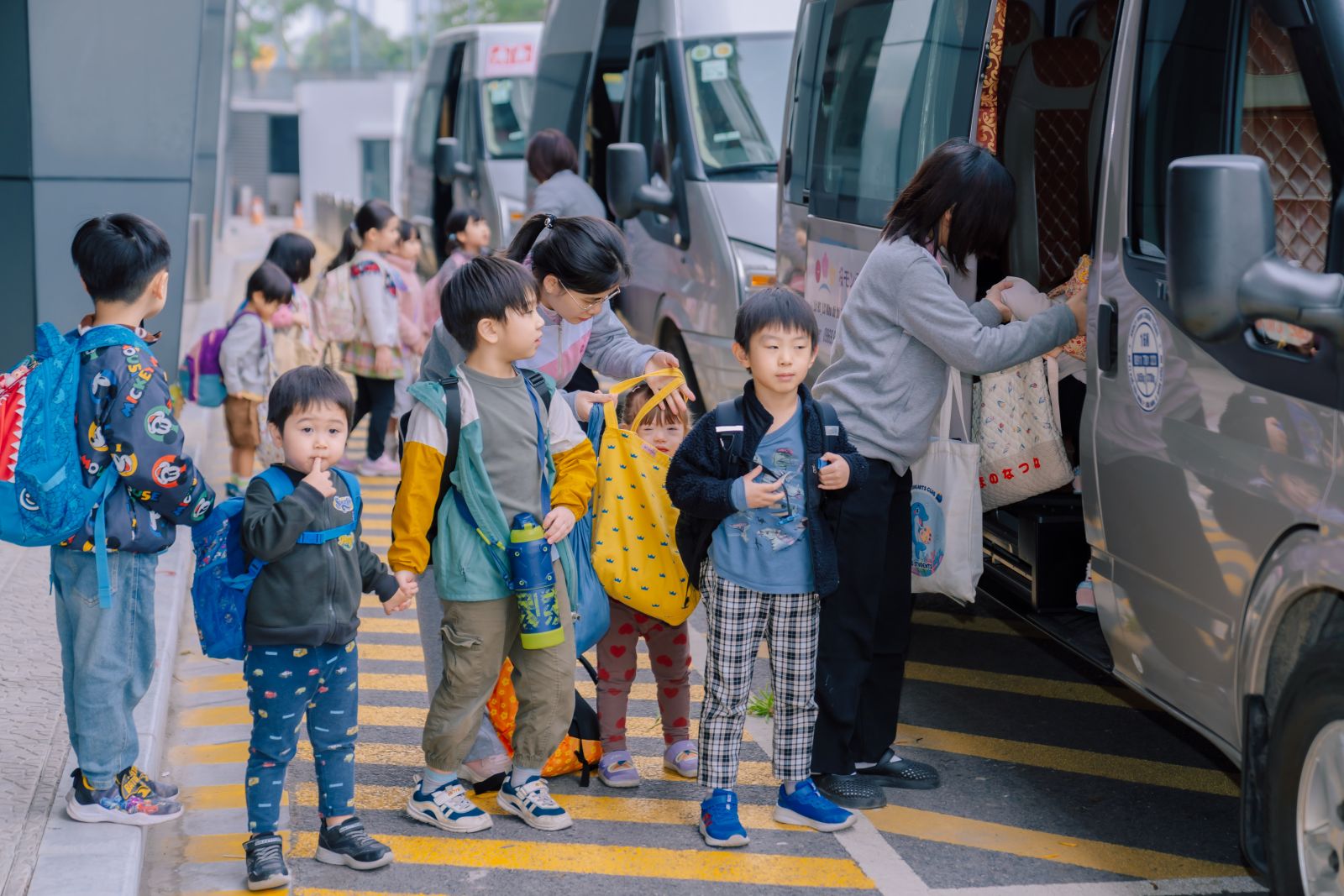 朝の登園です。園バスが、市内をまわっています。今日も一日元気に!