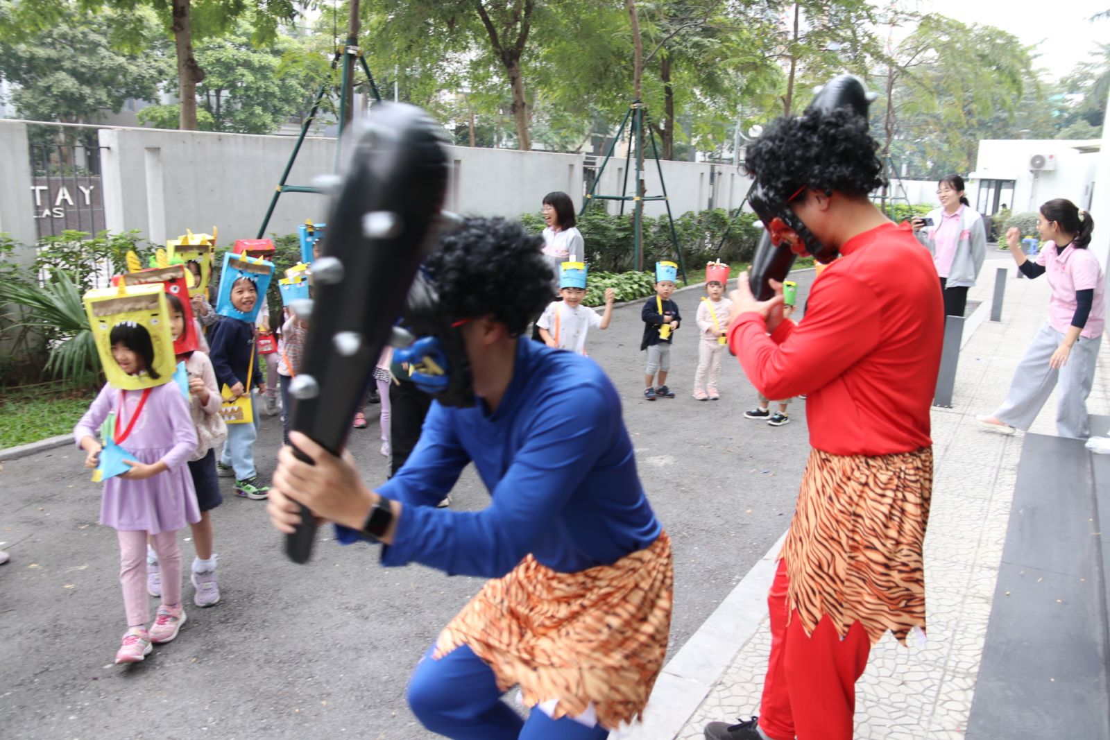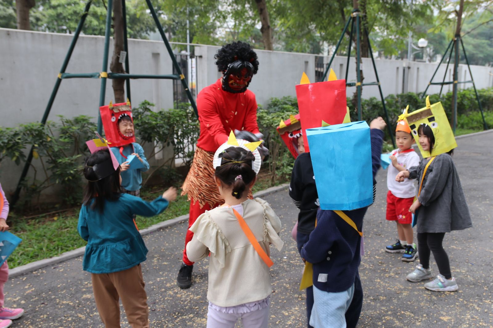 豆まきをしました。園児たちは元気よく 「鬼は外!福は内!」 と声をそろえて言いました。 園児たちはとても楽しみに参加していましたが、先生が扮した「鬼」を見て少し泣いてしまう子もいました。しかし最後には笑顔があふれ、鬼と一緒に記念写真も撮りました。